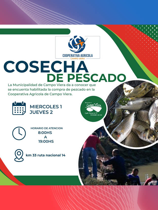 AGENCIA MISIONES.UNO | La Municipalidad de Campo Viera invita a la comunidad a participar de una nueva jornada de cosecha de pescado, una propuesta que busca fortalecer la producción local y facilitar el acceso a alimentos frescos a precios accesibles.
