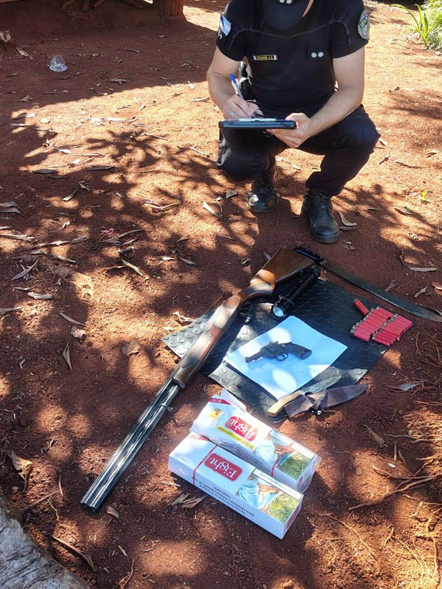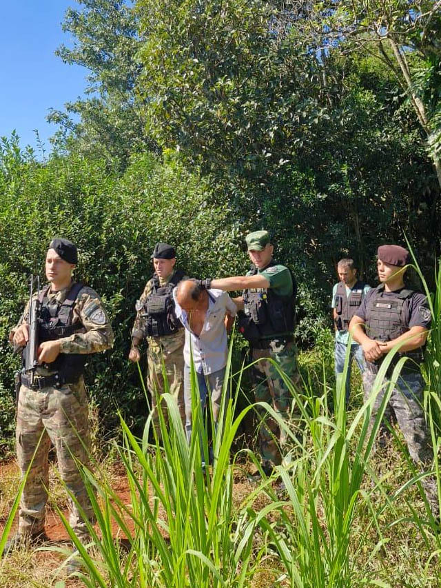 Finalmente, este martes por la mañana, los efectivos lograron ubicar y detener al sospechoso, quien se encontraba oculto en una zona de monte dentro de su chacra. El hombre fue hallado agazapado y en posesión de armas de fuego, siendo rápidamente reducido por el personal policial.