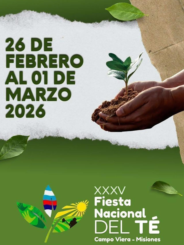 MISIONES.UNO – En Campo Viera, del 26 de febrero al 1 de marzo de 2026 se llevará a cabo la XXXV Fiesta Nacional del Té, un evento que destaca la producción tealera de Misiones y que contará con actividades culturales, artísticas y una exposición abierta al público.